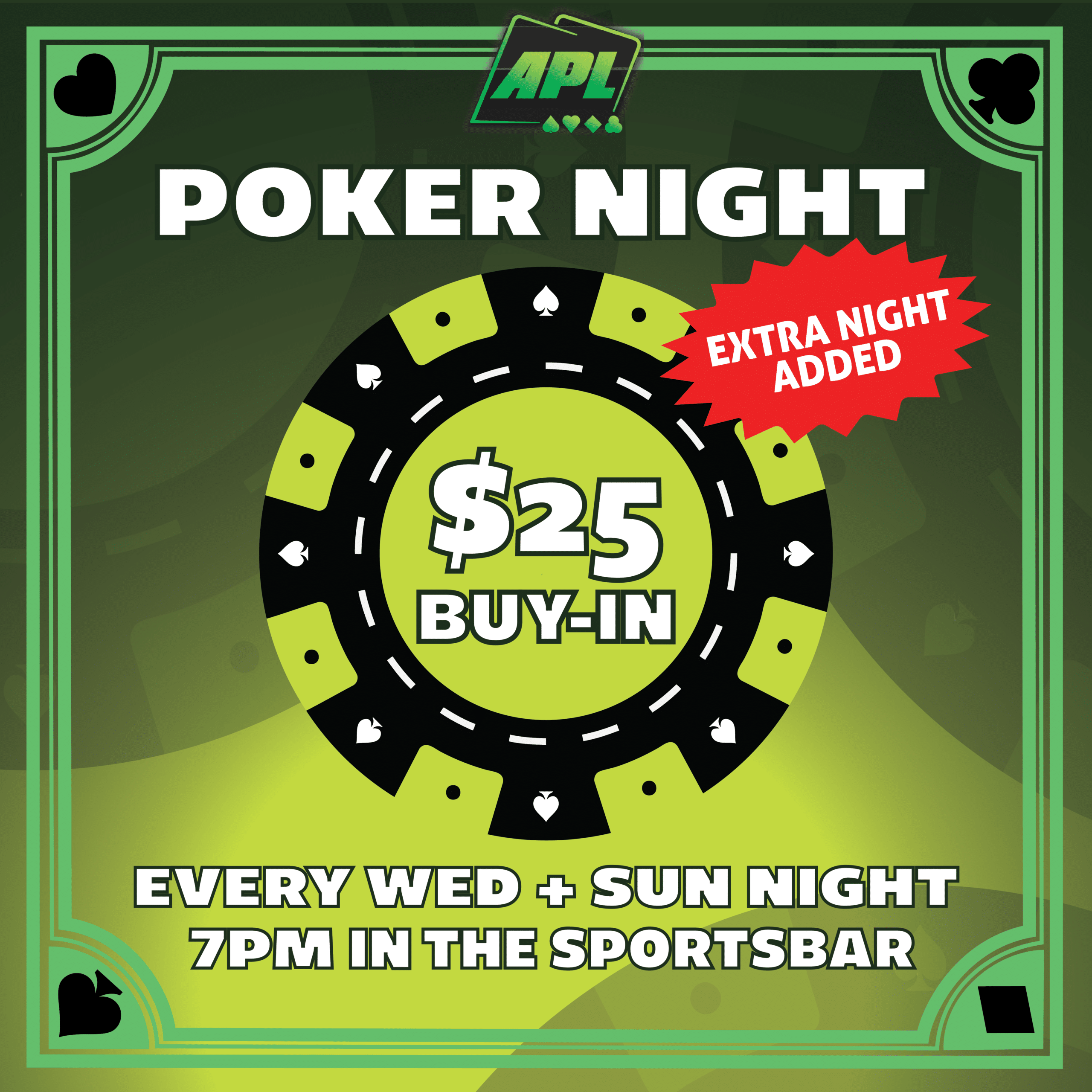 Join us every Wednesday and Sunday in the Sportsbar for an exciting evening of poker